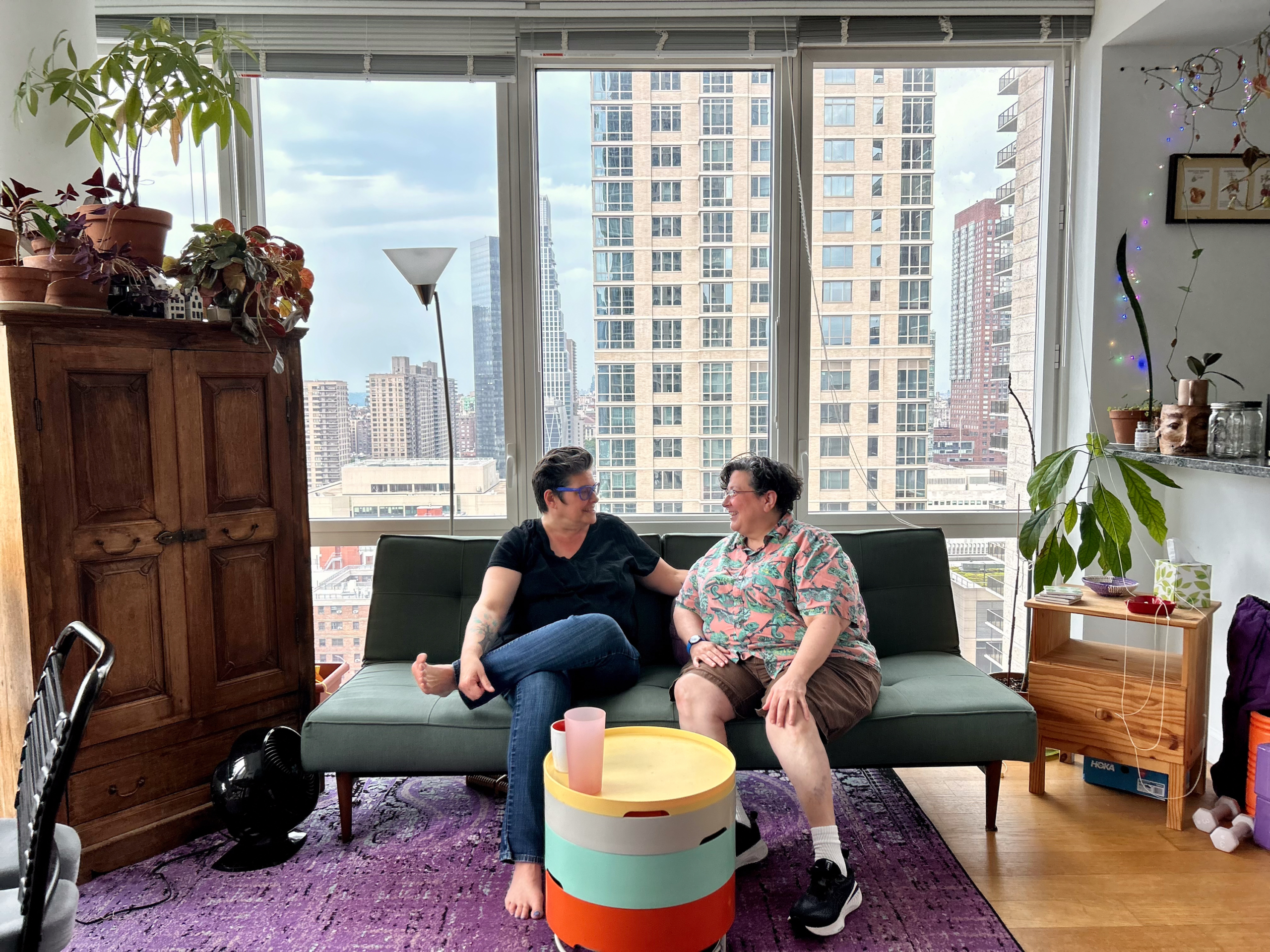 Haas recalls only having 24 hours to make a decision on whether they wanted to move from Bushwick to the affordable apartment in midtown. They jumped on it and haven’t looked back. Both of them are able to live comfortably and do the work they love. Schroeder works for a non-profit helping older adults apply for housing. Haas is an actor, writer and adjunct professor at CUNY.