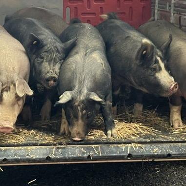 With a little added encouragement, a pig exits the trailer.